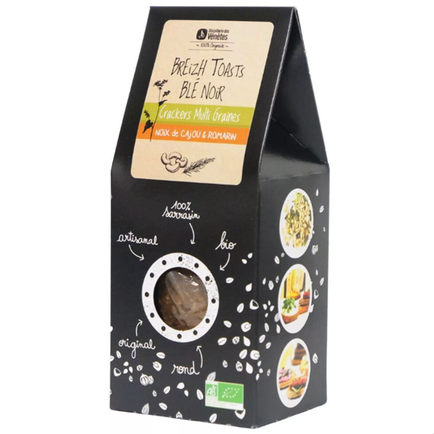 Il est fabriqué à partir d'ingrédients bio, où le sarrasin, les graines de lin, de tournesol, de sésame et de pavot viennent se marier à la noix de cajou et au romarin. Un beau mélange qui donne des toasts savoureux et croquants !