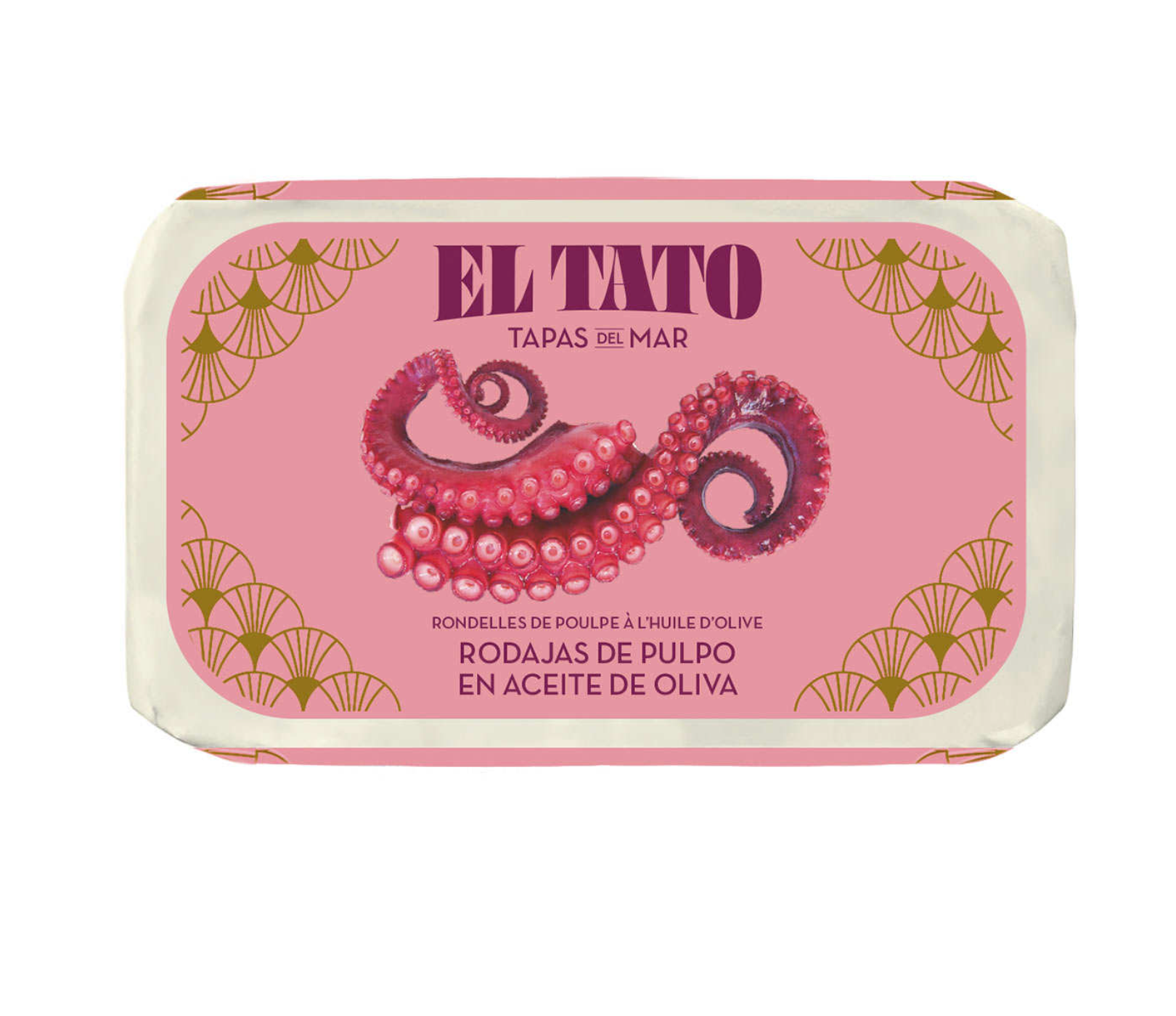 Calle El Tato est spécialisé dans les produits d’épicerie fine de la péninsule ibérique. Dans cette boîte de conserve artisanale, découvrez des rondelles de poulpes pêchés en Galice, et cuisinés simplement avec une huile d’olive de qualité. Un tapas idéal pour commencer votre repas ou élaborer un pulpo a la Gallega !